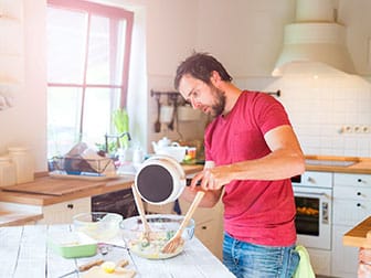 John was making dinner when I got home.