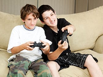 Charlie's playing video games with a friend.