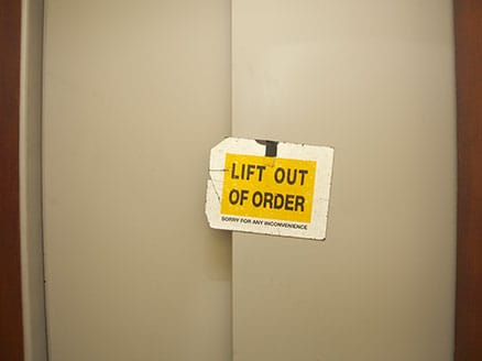 The elevator was being fixed when I arrived.