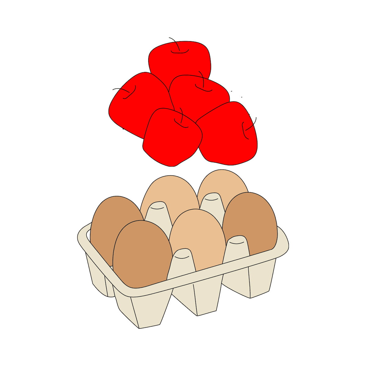 The apples and the eggs.