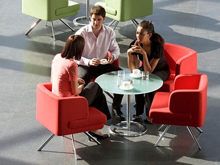 three people | at the table. |